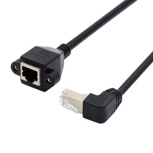 CYCat6RJ45ケーブル、8P8CFTPSTPUTPCat6オス-メスLANイーサネットネットワーク延長ケーブル左90度角度パネルマウント穴付き RJ45アングルタイプポート周りのスペースが限られている場合でも、メスポートに接続で...
