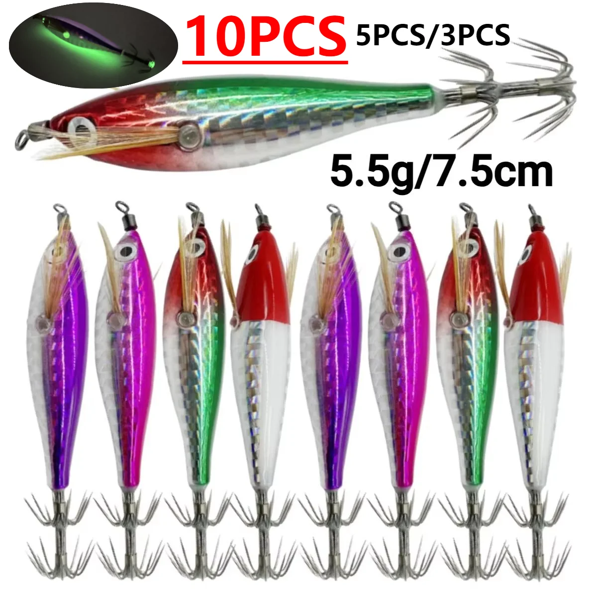 Aliexpress Choice#アリエク選定 レーザー発光釣り餌フローティング水平木製エビエギルアーイカジギングエビフックタコイカ釣り餌