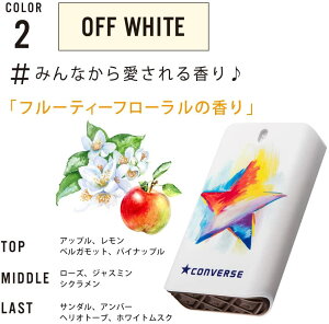 スニーカーで人気の「CONVERSE/コンバース」のムーブオンフレグランス! ユニセックス仕様で、キャップを開け閉めする手間なしで簡単プッシュ! 3段階のノート仕様で時間が経つと香りが変化しますよ! いつでもどこでも、日常に溶け込むフ