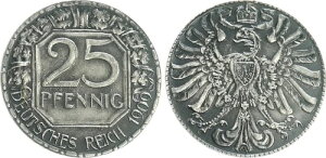 25 Pf. specimen specimen for 25 pf. J.18 in different design copper-nickel -商品について販売者メモ「Kaiserreich / 25 Pf. Probepr?...