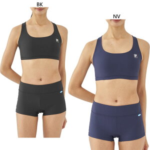 FILAのセパレートフィットネス水着。トップスとボトムの2点セットで、プールやビーチでのエクササイズをサポートします。ポリエステルとポリウレタン混紡の生地は、伸縮性に優れ動きやすいのがポイントです。トップスには、めくれ上がり防止機能付...
