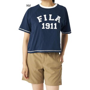 FILA レディース ラッシュガード。吸水速乾性に優れ、素早く水分を吸収しすぐに乾きます。ストレッチ性もあり優しくフィット。サムホールが付いてるので手の甲まで日焼け対策が可能。素材:ポリエステル。