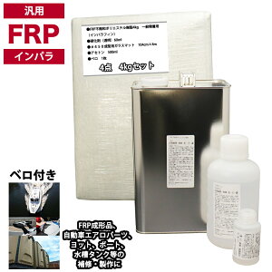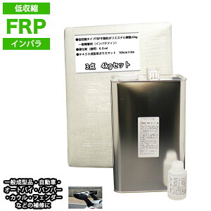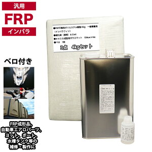(商品内容) ●FRP不飽和ポリエステル樹脂4kg 一般積層用(インパラフィン) ●硬化剤(透明)60ml ●#450成型用ガラスマット 104cm×4m ●アセトン 500ml ●ベロ 1枚 ●施工マニュアル...