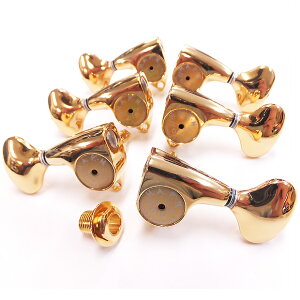 トモデルに使用されるクルーソンタイプのギターペグです。片側6連のセットです。 【仕様】・ギア比/1:15 ・付属品/ブッシュ、木ネジ 【ご注意】お取付けのギターメーカーや機種により、取付け加工を必要とする場合がございます...