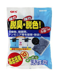 吸着力と脱臭力の高い、やしがら活性炭が10袋入のお徳用に。有機物・細菌類、アンモニア等を水の汚れになる物質を吸着・除去!水のニオイ、黄ばみを圧倒的なスピードで除去し、やしがら活性炭の力で透明できれいな水にします。 商品情