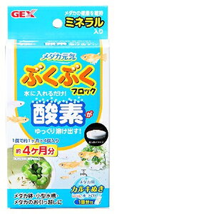 ●水槽に入れるだけ!ゆっくり溶け出して酸素を供給します●1錠で約1ヶ月効果が持続、4錠入りで約4ヶ月分入っています●メダカ用カルキぬき1回分つき●メダカ鉢・小型水槽・メダカのお引越しなどに【原材料】ぶくぶくブロック:過酸化
