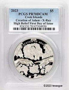 2023 CI $5 X-Ray Creation of Adam 1oz Silver High Relief Coin PCGS PR70商品について認証 PCGS純度 0.9999金属 銀額面 5ドル製造国/地域...