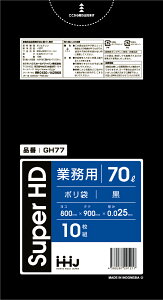 【法人様限定】ポリ袋 70L HDPE 0.025×800×900mm 黒 10枚×50冊(500枚) GH77【メーカー直送・時間指定不可・沖縄、離島不可】