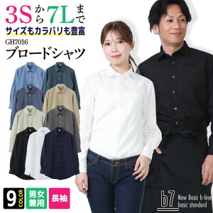 ・素材 : ブロード ・混率 : ポリエステル65%、綿35% 【特徴】 ・長袖 ・男女兼用 ・イージーケア ・通気性 ・豊富なカラー展開 ・3Sから7Lまでの幅広いサイズ展開 ・柔らかく快適な着心地を実現 ※取り寄せ商品、在庫有無、納期後