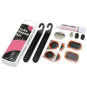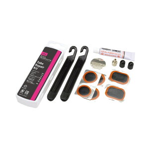 タイヤレバーまで付いたケース入りキット。 ●直径25mm 丸パッチゴム : 4枚 ●24×35mm角パッチゴム : 2枚 ●タイヤレバー : 2本 ●ゴムのり : 1本 ●ヤスリ : 1ケ ●英式 バルブ...