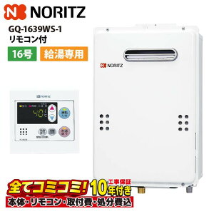 ノーリツ[NORITZ]ガス給湯器 GQ-1639WS-1/13A 給湯専用16号 都市ガス 屋外壁掛形 集合住宅向け。