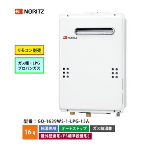 ノーリツ GQ-1639WS-1 16号 プロパンガス(LPG) 給湯専用ガス給湯器 屋外壁掛形 PS標準設置形 給湯専用タイプ NORITZ