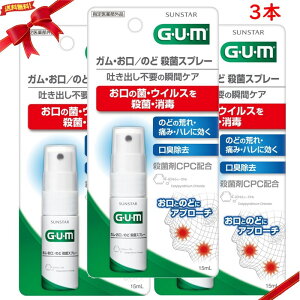 GUM (ガム) お口/のど殺菌スプレー 15ml x 3個セット GUM Throat & Mouth Spray ・口腔内の殺菌/消毒/口臭の除去 ・のどの炎症による声がれ/のどの痛み/のどのハレに効果あり...