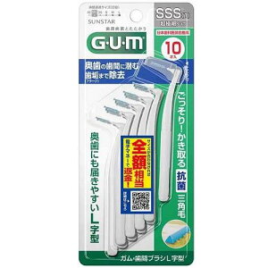 【ガム・歯間ブラシ L字型(超極細タイプ)SSSの商品詳細】 ●奥歯に届きやすいL字型で、滑りにくく握りやすい六角断面ハンドルを採用。 ●三角毛が、ハブラシだけでは落としきれない歯周プラーク(歯垢)を効果的に除去します。 ●抗菌毛を採