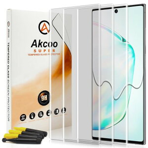 Galaxy Note 10 Plus フィルム UV全面吸着,Akcoo Note 10+ ガラスフィルム 高感度タッチ 指紋認証対応/ケースに干渉せず保護フィルム 【3枚入り】この商品には、Samsung...