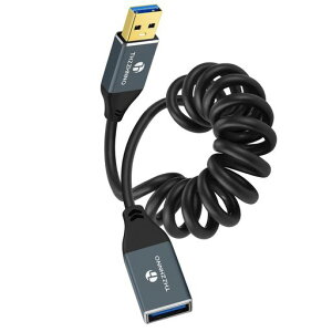 【コイル状USBオス-メスケーブル】スプリングUSB延長ケーブルは、伸縮性があり、絡まらず、省スペースです。このコイル状のUSB延長データ転送ケーブルは、アップグレードされた高品質のPU素材で作られており、柔軟性があり、伸びやすく、