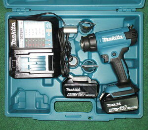 マキタ製の18V充電式ヒートガン(ホットエアガン)のHG181DZKと 18V-6.0Ahバッテリ:BL1860Bx2個と急速充電器:DC18RFのセットです。 特徴 ●電源がない現場での作業に便利 ...