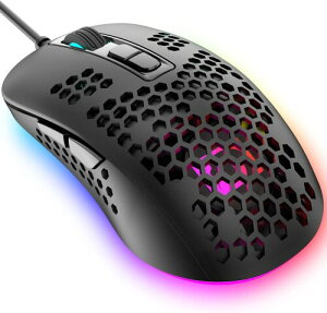 383超軽量有線ゲーミング/オフィス用マウス、軽量ハニカムケース、4RGBバックライト、2400DPI 調整可能、Win10/XP/Mac/Air/HP/Acer対応USB光学式コンピューターマウス 日本語説明書(ブラック)...