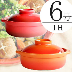 直火も使える 6号土鍋 オレンジ レッド の 明るいカラーの土鍋 IH対応 6号 土鍋 耐熱宴ベイク土鍋 1人用 耐熱食器 日本製 IHメタル(オールメタル)対応機器にはご使用できません。