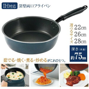 [カクセー]milli-one ミリ・オーネ IH対応 深型両口フライパン 焼く・炒める・煮る・茹でるがこれ一つ、深型だからフライパンとしてもお鍋として使えるミリ・オーネ深型両口フライパン。 深さ(約...