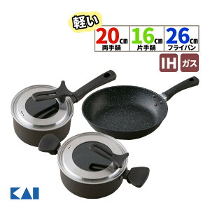 こちらは両手鍋20cm 片手鍋16cm フライパン26cmのセットです。 ★ご注意★ お客様のご覧の環境(PC・スマホ・タブレット・携帯電話など)により、色の見栄え等が異なる場合がございます。 貝印 KAI...