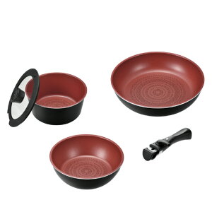 高さ:11cm)フライパン*1、(鍋内径:30cm、高さ:8cm、持ち手長さ:18cm)フライパン*1、(ポット内径:26cm、高さ:5cm、ハンドルの長さ:18cm。) 煮る・炒める・炒めるの機能に合わせたセットデザイン...