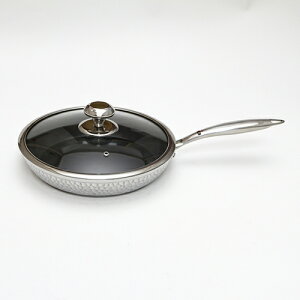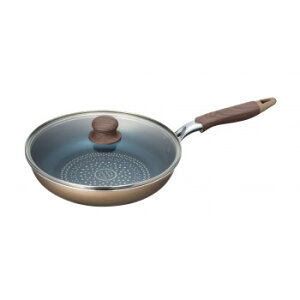 スベリが良く、焦げつきにくいふっ素樹脂加工フライパンです。中身の見えるガラス蓋付きです。こびりつきにくいので、少量の油で快適に調理出来ます。