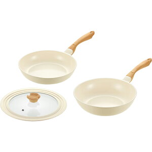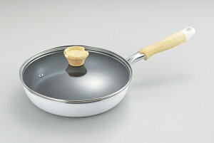 【特長】 ●耐久性抜群。角の丸い金属ヘラOK。 ●取り扱いやすい超軽量タイプ。 ●内面ビスなしで洗いやすく清潔です。 ●お料理が映えるおしゃれなアイボリーカラー。ハンドルはシックな木目調 ●熱周りが良いので中火で十分に調理可能