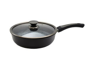 サイズ:26cm蓋付き◆商品名:ケヴンハウン(Kevnhaun) アルミフライパン26cm 深型 マーブルコーティング IH対応 ガラス蓋付 軽量 フッ素樹脂加工 ジェットブラック PFOA PFOSフリー...