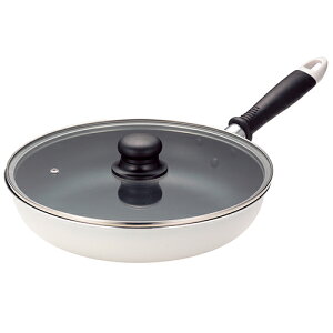フラットタイプのガラス蓋でシャープですっきりとした印象の蓋付フライパン。スタイリッシュなカラーリングでキッチンをおしゃれに演出。内面ふっ素樹脂加工でこげつきにくく、汚れもサッとひと拭き。ガラス蓋は調理中も中身が確認で