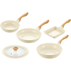 【特長】 ●耐久性抜群。角の丸い金属ヘラOK。 ●取り扱いやすい超軽量タイプ。 ●内面ビスなしで洗いやすく清潔です。 ●お料理が映えるおしゃれなアイボリーカラー。ハンドルはシックな木目調 ●熱周りが良いので中火で十分に調理可能