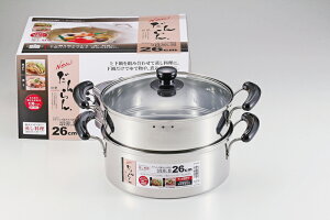 ゆで物や煮込み料理に。 ★もち米の蒸せる目安は約1升です★ だんらん ステンレス製 ガラス蓋付 2段蒸し器 26cm H-5875 ■商品サイズ:約全長385x幅285x高さ240mm ...