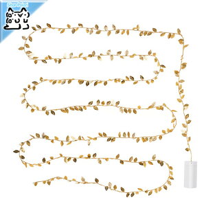 【 IKEA - イケア -】STRALA -ストローラ- LEDライトチェーン 全40球 電池式 リーフ/ゴールドカラー クリスマス オーナメント デコレーション どこでも使える素敵なデコレーション照明...