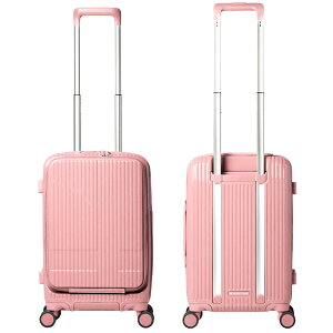 機内持ち込み出来るサイズです。特徴的なのはパソコンなどすぐに取り出せるチャック式ポケットが前面にあるところです。これが思いのほか便利です。サイドにも持ち手がついており階段の上り下りなども簡単にすることができます。ストッパーも付いておりよく転がるので運びやすいと思いました。