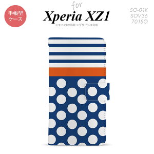 手帳型 ケース SO-01K スマホ カバー Xperia XZ1 エクスペリア ドット・ボーダー 青 nk-004s-so01k-dr355 対応機種名:Xperia XZ1 SO-01K 素材:合成革 本体色:ホワイト