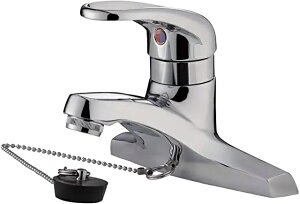 台付きタイプの洗面混合栓です。ゴム栓付きなので、洗面台での水溜めも可能。 シングルレバーなので、簡単に吐水止水・温度調整が出来ます。ご高齢の方からお子様まで使いやすい為、使用回数の多い水回りに最適です。 また、レバーハ