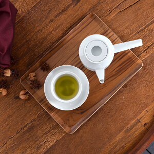 見た目は普通の木のトレイに見えますが、触ってみると少し違う。器を乗せて傾けてみるとその違いに気づきます。実は表面に滑り止め加工が施されているんです。熱い器を運ぶ時、そんなちょっと緊張する日常のワンシーンから解放されま