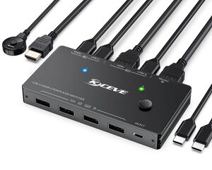 KCEVE 8K DP KVM切替器 4PC 2モニター、コピー/拡張モード USB 3.0ポート (8K@30Hz/4K@144Hz) KVM Switch KVMスイッチ PC4台とディスプレイ2台対応...