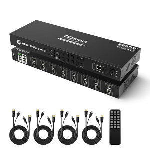 【高互換性8入力1出力KVMスイッチ】この8ポートKVM切替器は、1セットのマウス、キーボードおよびモニターで8台のコンピューターを操作できます。スペースとコストを節約し、ラックイヤーが付き、19標准...