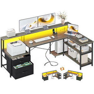 ゲーミングデスクとしても使用できるおしゃれなL字デスク。机には、2つのACコンセントとUSB ポート付きで、パソコンやスマホなどの充電ができて超便利です。また、引き出しは間取りや利き手に合わせて左右付け替え可能...