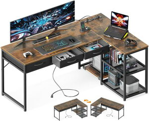 【コンセント付きデスク・ゲームと仕事両立】パソコンデスクとしてはもちろん、ゲーミングデスクとしても使用できるおしゃれなL字デスク。机には、2つのACコンセントとUSBポート付きで、パソコンやスマホなどの充電ができて超便利です...
