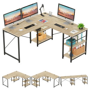 オフィスデスク PCデスク パソコンデスク 学習机 ワークデスク 収納棚付き L字型天板 R仕上げ 引出付き PC収納 カスタマイズ可能