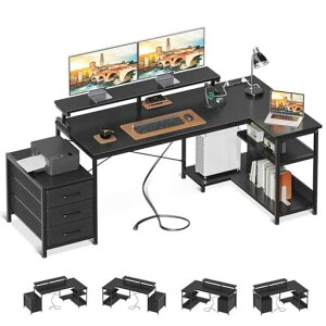 安定性が大幅に向上しています。 L字型デスクトップ、腕の活動領域を増やし、より多くの周辺機器を収容でき、操作が簡単です収納棚付きデスクは、ゲームデスクとして使用できるだけでなく、スタイリッシュなL字型デスクです。 ゲーム...