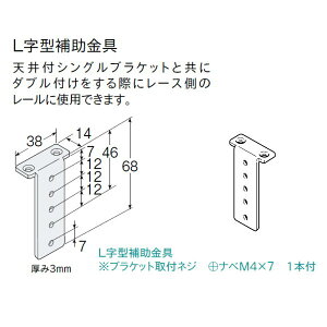 ルに 天井付シングルブラケットと共にダブル付けをする際にレース側のレールに使用できます。 L字型補助金具 ※ブラケット取付ネジ ナベM4×7 1本付