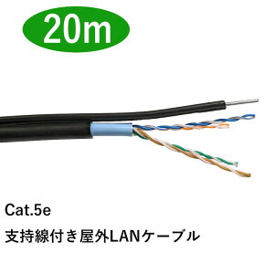 【切り売り】 支持線付き屋外用Cat.5e LANケーブル 20m メッセン付き屋外用LANケーブルの切り売りです ※数十cm前後の誤差はあります 通常のLANケーブルの上に、耐候性のある屋外被覆の乗った2重被覆のケーブル...
