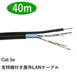 【切り売り】 支持線付き屋外用Cat.5e LANケーブル 40m メッセン付き屋外用LANケーブルの切り売りです ※数十cm前後の誤差はあります 通常のLANケーブルの上に、耐候性のある屋外被覆の乗った2重被覆のケーブル...