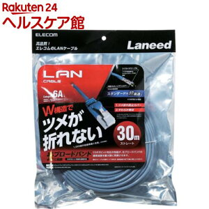 ELECOM エレコム ツメ折れ防止LANケーブル(Cat6A) ▼コネクタ形状1:RJ-45 ▼コネクタ形状2:RJ-45 ▼カテゴリ:6A ▼結線:UTP・撚線 ▼長さ:30m ▼ケーブル色:ブルー
