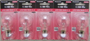 メーカー パナソニック製 品番 LDS100V36WC2x5 注意事項 ミニ電球40W形クリア 口金17mm 定格寿命1500時間 5個セット