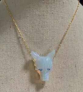 pendentif tete de loup en opalite et chaine gold filled 14k fait main de 45 cmオパライトオオカミティーンゴールドチェーン