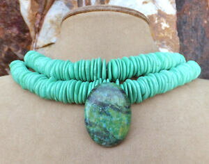 vert turquoise cercle disque grand collier imposant azurite malachite pendentifグリーンターコイズサークルディスクグランドコリアーアズライトマラカイトペンダント